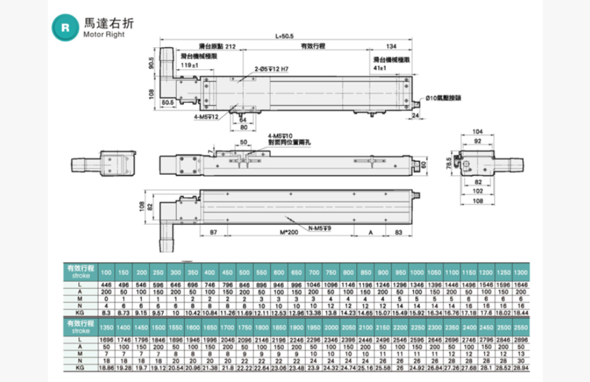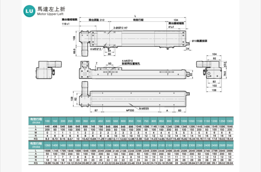 標準行程 : 100-2550mm