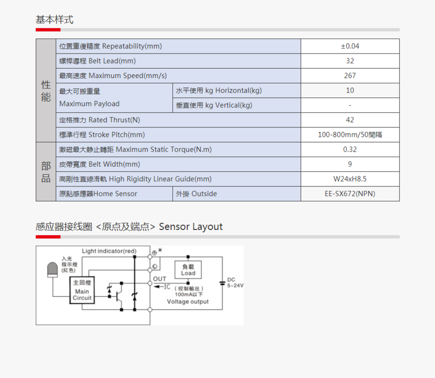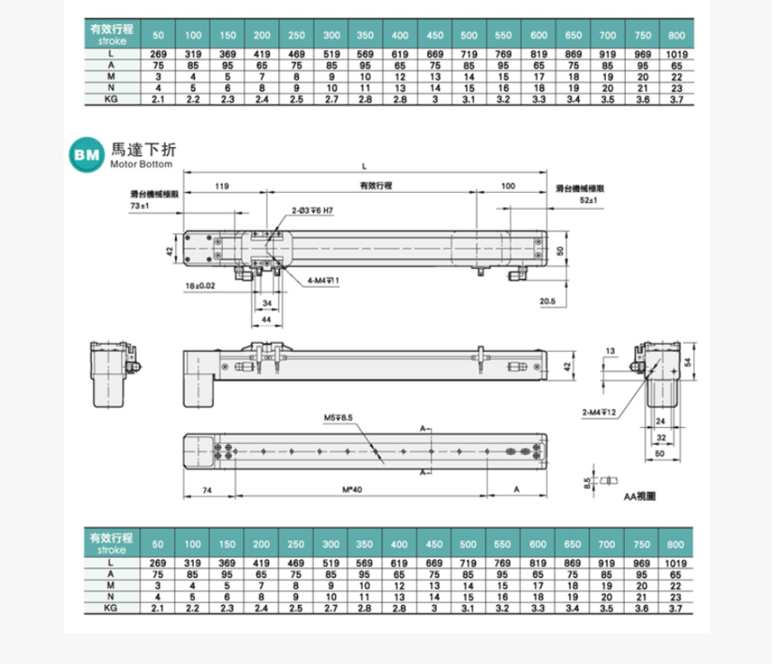 標準行程 : 100-800mm