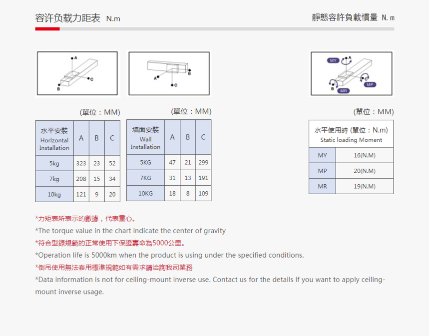 產品特色 : 最大水平负载:10(Kg)